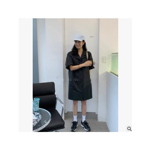 【5天】21夏季韓國東大門休閑風工裝雙口袋系扣襯衫連衣裙