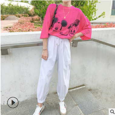 2019夏季新款蘿卜褲純色寬松哈倫女褲九分褲顯瘦百搭一件代發(fā)