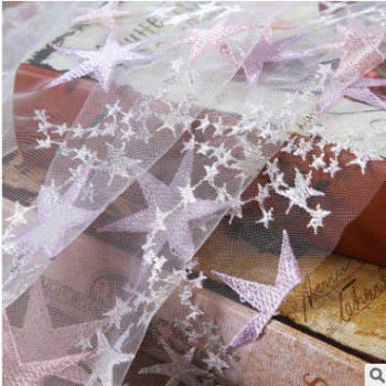 新品 星星蕾絲繡花面料 時(shí)尚女裝桌布窗簾燈罩 全滌繡花布料
