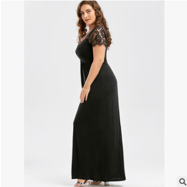 工廠直銷亞馬遜爆款2017夏季蕾絲拼接大碼長裙