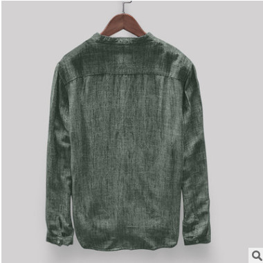 2019最新款休閑寬松立領翻袖純色男士長袖襯衣