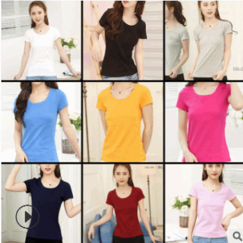 簡約夏季短袖T恤女圓V領修身純棉純色打底衫休閑半袖bf學生上衣服