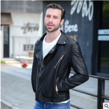 速賣通爆款翻領男士皮衣時尚休閑機車PU皮衣男加絨皮夾克男外套