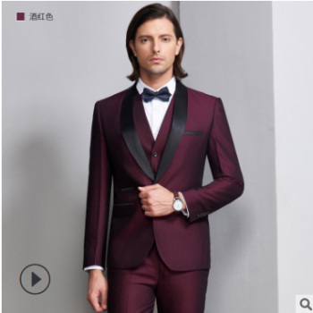 men suit男士西服套裝西裝三件套青果領主持禮服合唱演出表演西裝