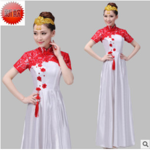 新款2018成人大合唱演出服裝長裙蕾絲合唱禮服古箏舞臺表演服女