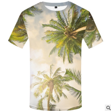 KYKU速賣通爆款椰子樹t恤男3D數碼印花短袖歐美外貿圓領休閑上衣