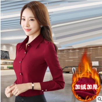 2018秋冬新款保暖襯衣打底衫寸衫OL職業(yè)工裝加厚加絨白襯衫女修身