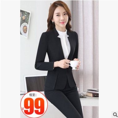 職業(yè)裝套裝女長袖秋季新款氣質(zhì)時(shí)尚保險(xiǎn)公司酒店工作服女西裝套裝