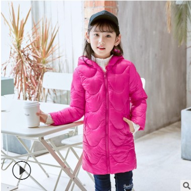 秋冬款兒童輕薄羽絨棉服中長款保暖連帽棉衣中小童中長外套棉襖