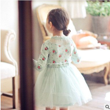 韓版童裙連衣裙夏季2018中大童純棉長袖蕾絲連衣裙兒童蓬蓬裙批發