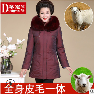 皮毛一體羊毛大衣女中長款秋冬中老年媽媽裝外套尼克服女派克皮草
