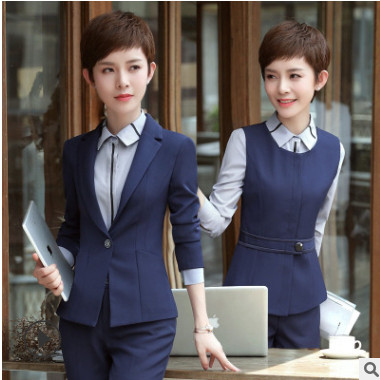職業裝套裝女新款學校工服酒店秋冬工作服套裝商務三件套高檔批發