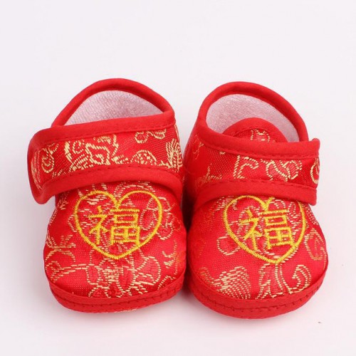 唐裝滿月福字生日春秋款防滑寶寶學步鞋嬰兒軟底代發723
