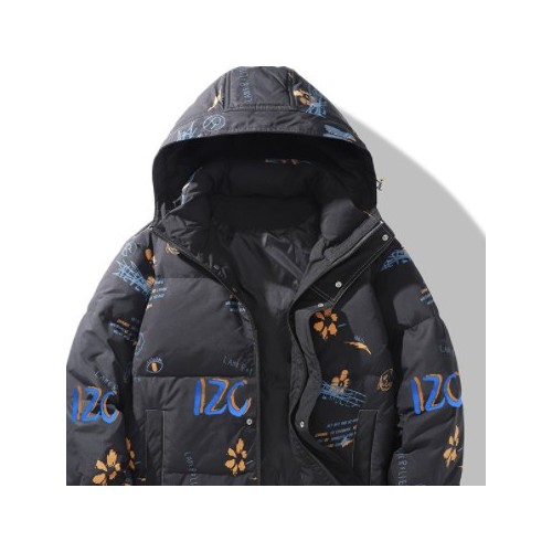都市男裝|2021年冬季新款連帽保暖白鴨絨外套ins潮流涂鴉羽絨