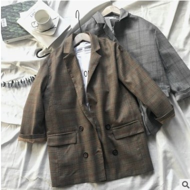 9937芷蓯夕2019秋裝新款韓國女裝復古格子女式小西裝外套女