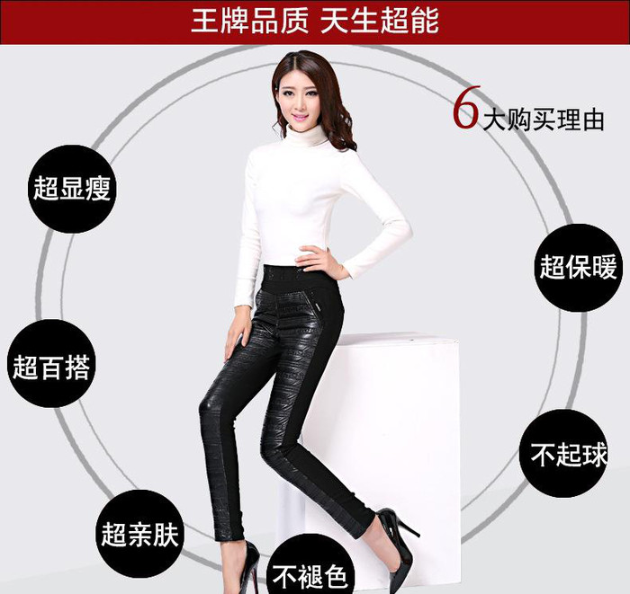 秋冬季高腰中老年抓絨加厚AB洗水皮打底羽絨褲女士休閑褲子女褲