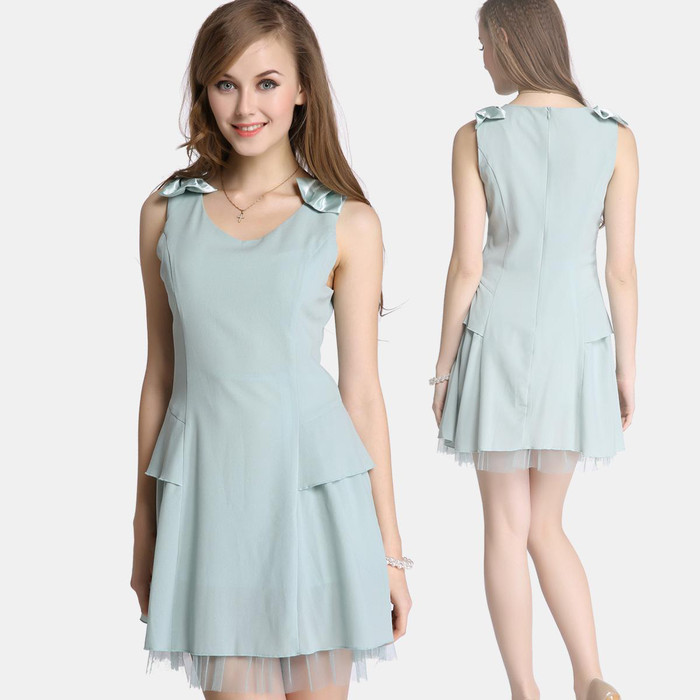 特價(jià)清倉(cāng) 2013新款女裝甜美蝴蝶結(jié)純色V領(lǐng)無袖連衣裙網(wǎng)紗背心裙