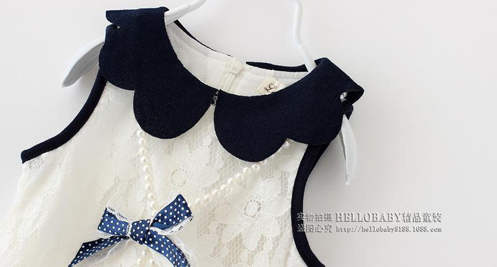 2015夏童裝女童連衣裙背心裙蕾絲袖帶項鏈寶寶無袖裙 韓