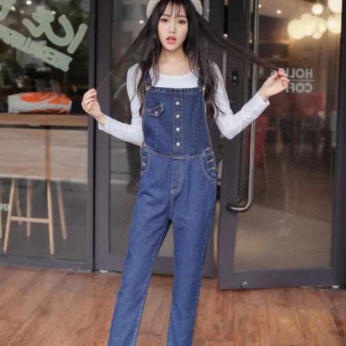 【實拍】秋冬季新款背帶牛仔褲女休閑背帶褲寬松直筒女褲子潮流