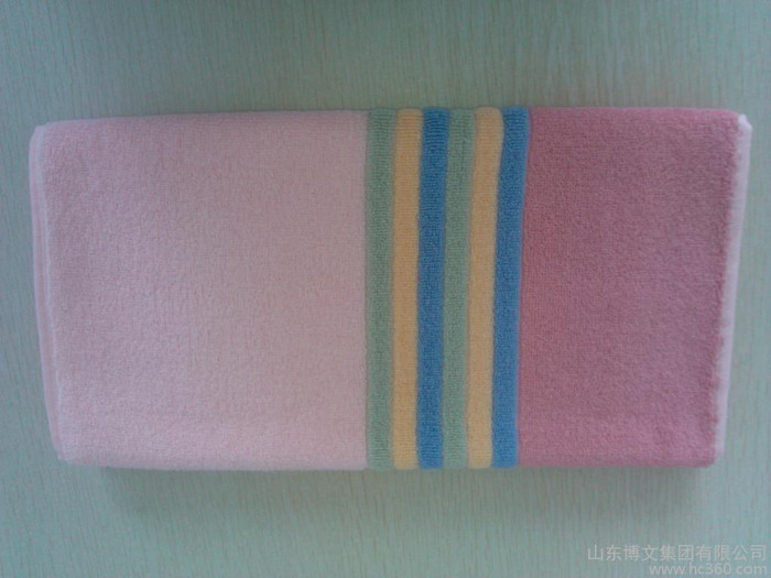 供應博靚純棉 粉色 提花 鍛檔浴巾