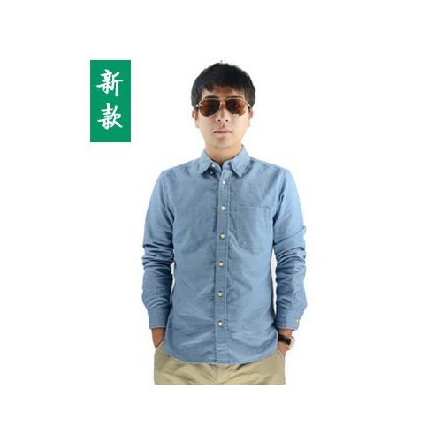 供應寶源韓版修身藍色男士長袖襯衫批發