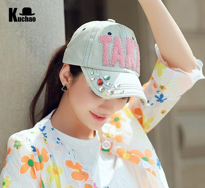 帽子女士夏季出游韓版水鉆牛仔鴨舌帽遮陽帽 防曬帽 棒球帽