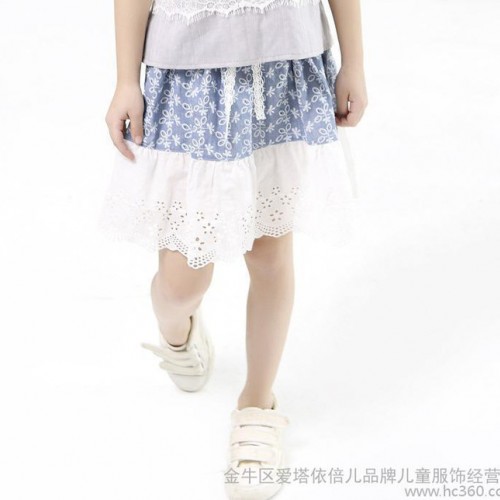 逗卡寶仔童裝女童休閑短裙2015夏裝新款兒童牛仔花邊裙半身裙