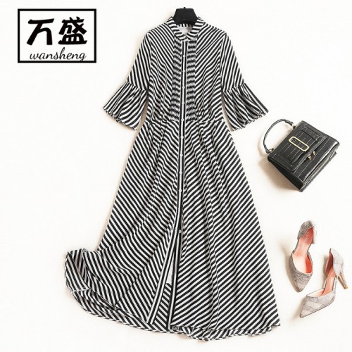 萬盛 2019夏季連衣裙黑色條紋裙子亞馬孫速賣通女裝很仙氣得連衣裙連衣裙支持定制雪紡連衣裙仙女超仙2019夏季新款修身氣