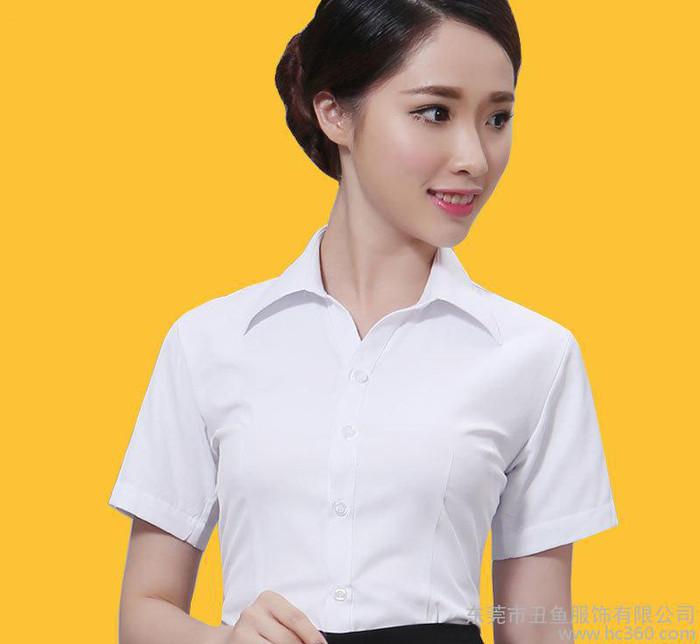 爆款短袖襯衫女白襯衣職業裝女OL通勤大碼前臺女正裝工作服印LOGO