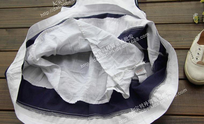 原單 女童文藝范清新白色撞色款純棉連衣裙背心裙 外貿(mào)童裝55
