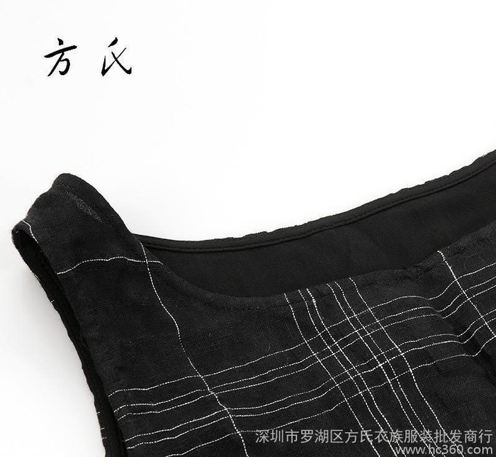 2016新款A字裙夏季原創女裝黑色連衣裙亞麻圓領無袖背心裙 方氏衣族