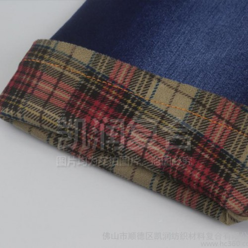 彩色格子牛仔復合布料 牛仔服裝復合家紡布 復合布面料