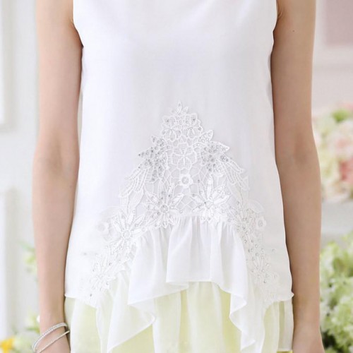 韓國實拍 2015夏裝新款韓版無袖拼接雪紡衫背心小衫
