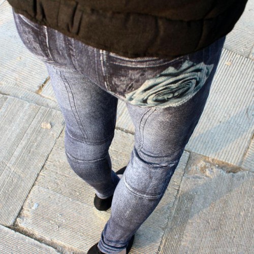 熱賣新產品地攤貨源 女士仿牛仔打底褲不倒絨加厚 彈力大碼九分