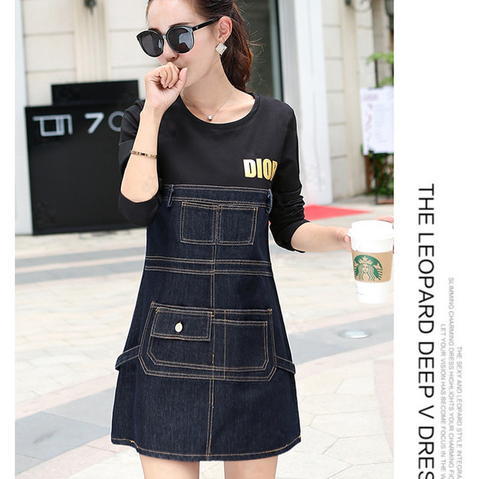 歐洲站2015秋新款女裝牛仔拼接連衣裙高品質微信代理代發
