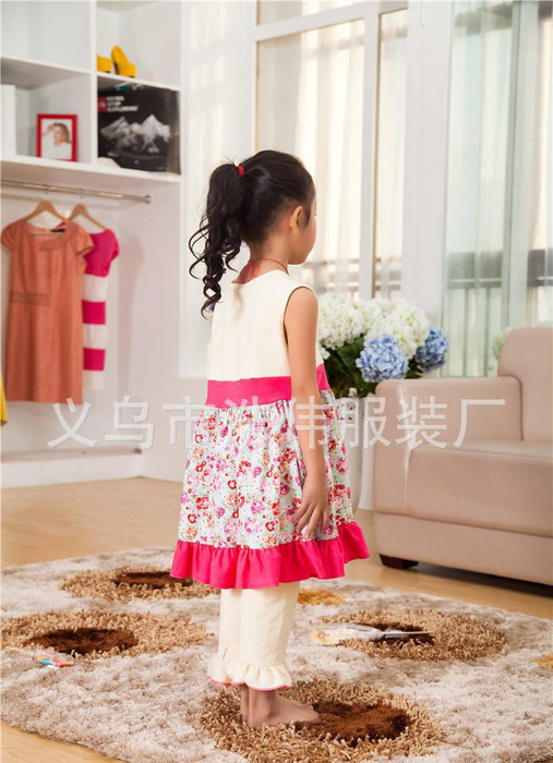 2015新款 中小女童童套裝 背心衣裙上衣兩件套 簡單款純棉小碎花