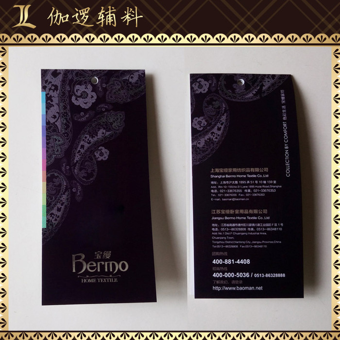 公司介紹杭州伽邏紡織服飾有限公司是織嘜、吊牌、洗標、紐扣、繡花標、紗線等產品專業生產加工的公司,擁有完整、科學的質量管理體系。杭州伽邏紡織服飾有限公司的誠信、實力和產品質量獲得業界的認可。歡迎各界朋友蒞臨參觀、指導和業務洽談。 Hangzhou Jialuo textile clothing co., LTD. Is a woven label, tag, washing mark, buttons, the embroidery, yarn and other products professional production and processing company, with complete and scientific quality management system. Hangzhou logic textile clothing co., LTD. Of integrity, strength and product quality obtain industry acceptance. Welcome friends from all walks of life come to visit, guidance and business negotiation.