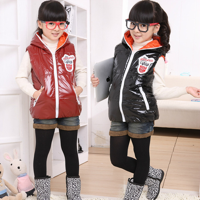 雙十一春秋冬款韓版女童裝潮款汽車圖案亮皮夾棉連帽兒童馬甲背心