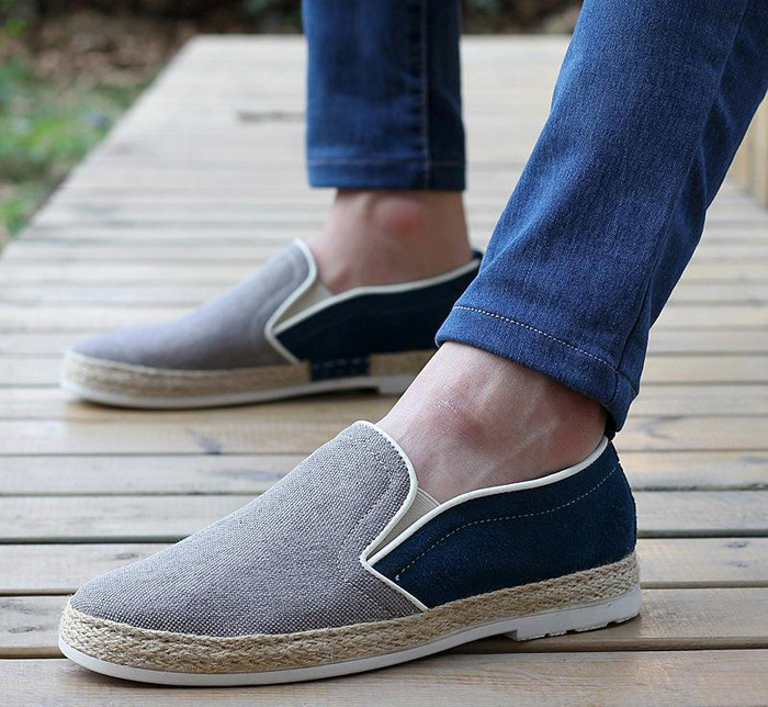 一件代發(fā)春夏男士單鞋牛二層皮豆豆鞋英倫棉麻透氣駕車鞋編織布鞋