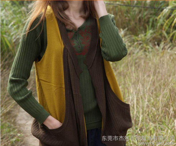 杰然不同女式純棉針織衫假兩件套背心上衣