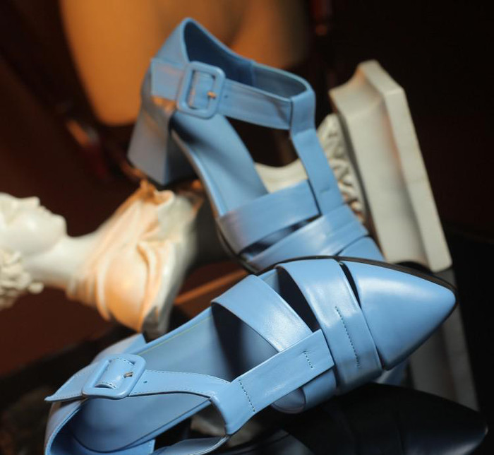 2015春夏歐美純色丁字扣腳環帶包頭中跟橡膠底羅馬涼鞋