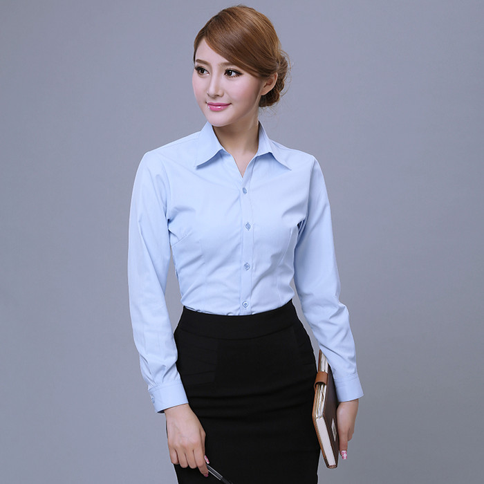 定制 長(zhǎng)袖女士襯衫職業(yè)裝打底秋季工作服商務(wù)修身襯衣工裝大碼淺藍(lán) 臺(tái)山市襯衫定制