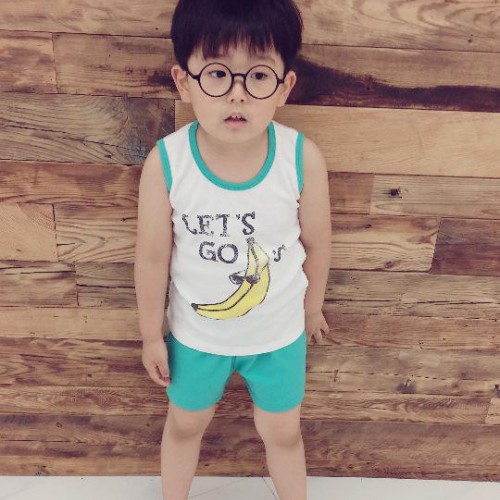 韓國韓版童背心套裝可愛卡通印花童裝微信代理565 567 5