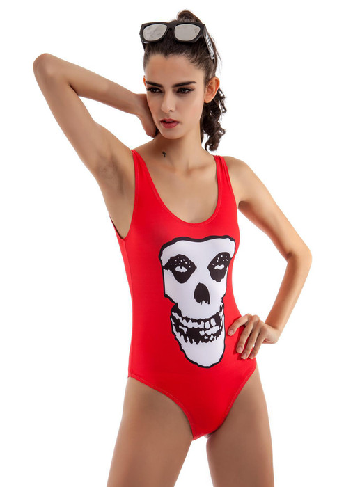 速賣通歐美骷髏字母印花連體泳衣 背心短褲 外貿
