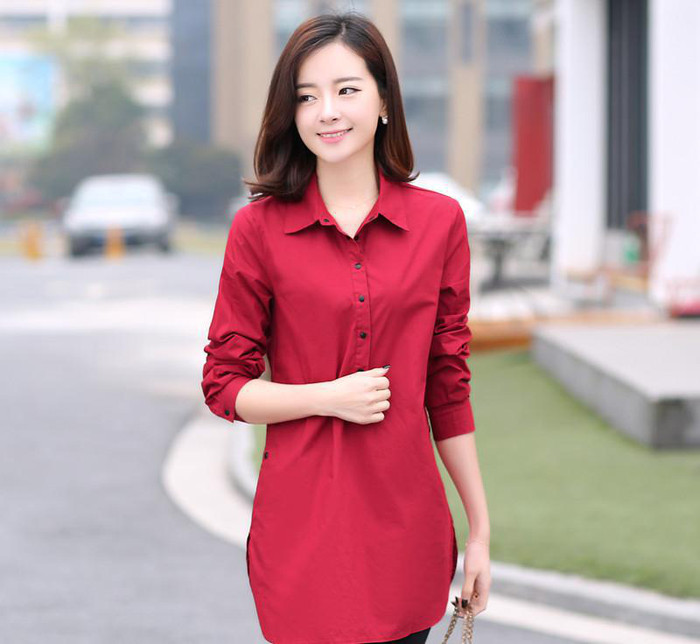 大碼襯衫女2017春季長袖女裝襯衣新款韓版寬松全棉休閑春裝打底衫