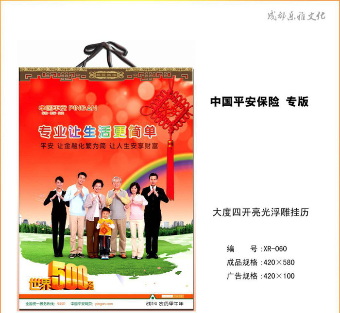 中國平安保險專版 XR070環保無紡布袋掛歷 成都無紡布掛