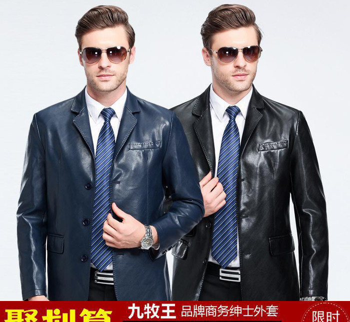 2016秋冬新款海寧綿羊皮真皮西服男西裝領男士皮夾克皮衣爸爸外套