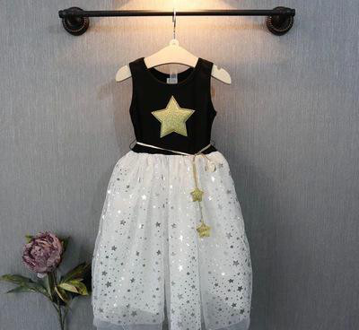 童裝一件代發(fā)2015春夏新款女童五角星中長(zhǎng)款紗紗裙連衣裙背心