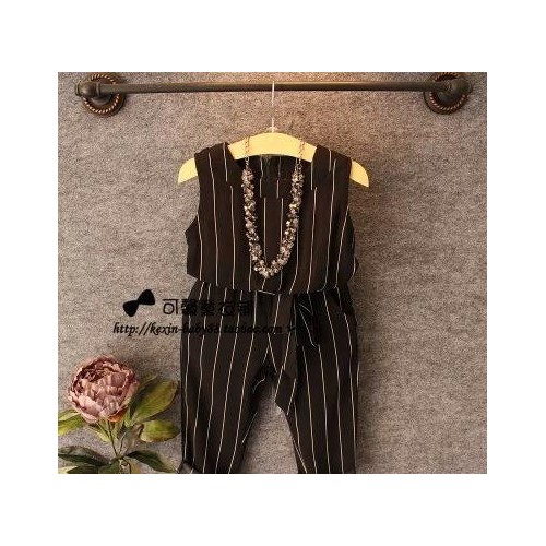 童裝2015女童豎條紋收腰背心腰帶式長(zhǎng)褲兒童套裝潮裝一件代發(fā)
