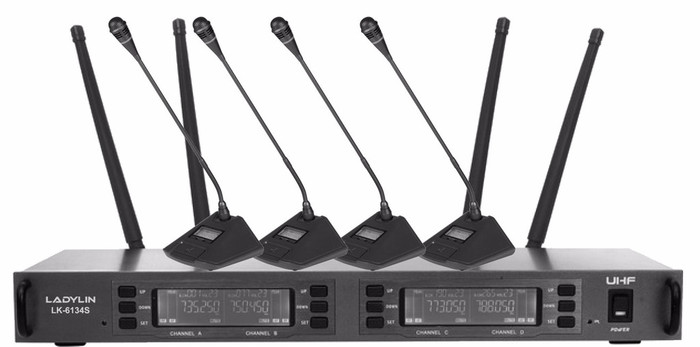 高品質 LADYLIN音視頻 -會議話筒 UHF無線話筒一拖四主機 可選配手持咪 鵝頸咪 頭戴咪 領結;采用音頻壓縮擴